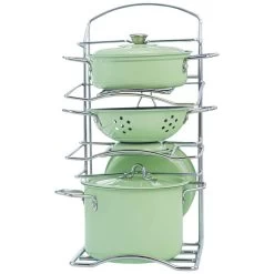 Batterie de cuisine. Coffret complet. Contient : 1 étagère, 1 faitout avec couvercle, 1 poêle, 1 panier égouttoir à fruits et 1 casserole avec couvercle. En métal. Dimensions de l’étagère : 12 x 13 x 24 cm.