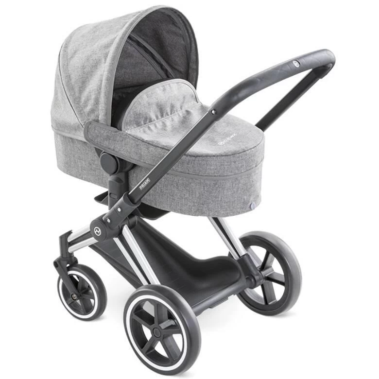 Un landau 3 en 1 très complet et réaliste pour partir en promenade avec son poupon ! Le landau 3 en 1 Priam Cybex est idéal pour se promener avec son grand poupon de 36 à 42 cm. L’enfant peut choisir l’option qu’il préfère à n’importe quel moment : landau; poussette ou encore nacelle (qui peut également servir de transat). Le landau est parfait pour partir en promenade tout en laissant dormir son poupon paisiblement dans sa nacelle. La nacelle s’installe facilement dans un sens ou dans l’autre ! S’il fait trop chaud; la canopy se retire facilement : il suffit de défaire les boutons à pression qui la maintiennent attachée à la nacelle. Très pratique pour protéger son poupon contre le soleil; le vent et les intempéries; la capote peut se plier. Le landau 3 en 1 Priam Cybex est équipé de quatre roues silencieuses dont deux roues avant multidirectionnelles. Avec le panier de transport; l’enfant peut emporter avec lui tout le nécessaire pour s’occuper de son poupon. Pour permettre à son poupon de profiter du paysage lors de sa promenade; l’enfant peut choisir la position poussette ! La nacelle se met en position poussette en appuyant sur les deux gros boutons situés sur les côtés et en fermant les différents boutons. Une fois séparée de la structure du Priam Cybex; la nacelle peut être utilisée comme lit confortable pour son poupon. Grâce à sa poignée de transport; la nacelle amovible est très facile à transporter. Quand elle est en position « siège de poussette »; elle peut servir de transat dans lequel l’enfant peut donner à manger à son poupon.Petit plus : la structure de la Priam Cybex se plie facilement et en toute sécurité. Une fois pliée; elle est très compacte et peut ainsi être rangée discrètement.