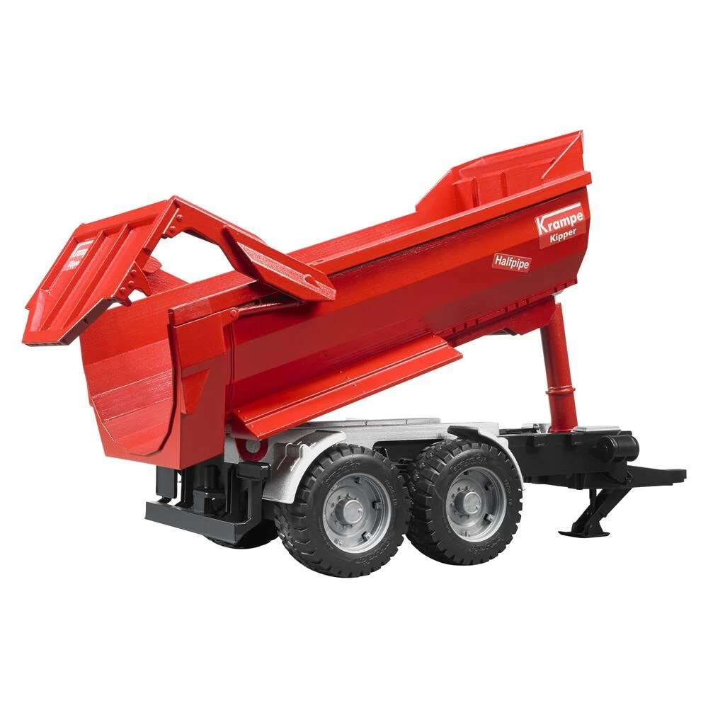 Halfpipe remorques basculantes sont de plus en plus populaire pour les applications qui nécessitent des mouvements de terre efficace. Une tracteur-remorque composée d’un tracteur puissant et d’une semi-remorque à essieu tandem est maintenant souvent prioritaire sur un camion, surtout lorsque le sous-sol est boueux et difficile. Cependant, vous rencontrerez fréquemment ce type de remorque dans l’agriculture aujourd’hui. Le modèle BRUDER se distingue par son design riche en détails et apporte la même capacité de terrassement puissant au bac à sable que l’original offre dans la vie réelle. Grâce à sa construction robuste et à sa conception, le chargement des marchandises est parfaitement centré, le centre de gravité du véhicule reste au centre et garantit une stabilité de conduite qui ne peut être obtenue avec des caissons. Comme le cylindre de basculement est disposé au centre devant l’auge, l’original bénéficie d’une transmission exceptionnelle de force dans l’auge pendant le processus de basculement. Bénéficiant d’un attrait visuel incomparable, le modèle profite également de cette disposition grâce au cliquet multi-pas, ce qui rend le jeu avec ce modèle encore plus captivant. La semi-remorque benne tandem Krampe est un autre point fort de notre gamme de remorques agricoles. En plastique.