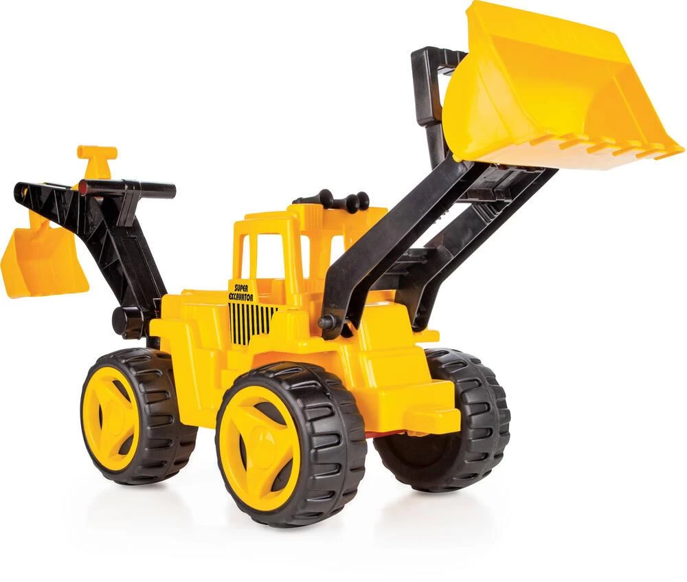 Très grand bulldozer et excavateur. Godet avant mobile. Godet arrière pivotant à 360 degrés. Matières du produit : en polypropylène et polyéthylène. Instructions imprimées sur la boîte. Livré monté. Poids net : 2.96 kg.