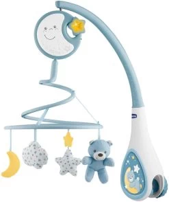 Mobile au système de fixation pratique permettant de le fixer sur les berceaux en bois et en tissu. 20 minutes de musique classique et sons de la nature et une douce veilleuse berceront bébé et l’emmèneront vers le pays des rêves. Sa partie électronique et lumineuse détachable apaisera Bébé en promenade. Attention ! Afin d’éviter tout risque de blessure suite à un enchevêtrement, ôter le jouet dès que l’enfant tente de se mettre à quatre pattes ou de ramper.