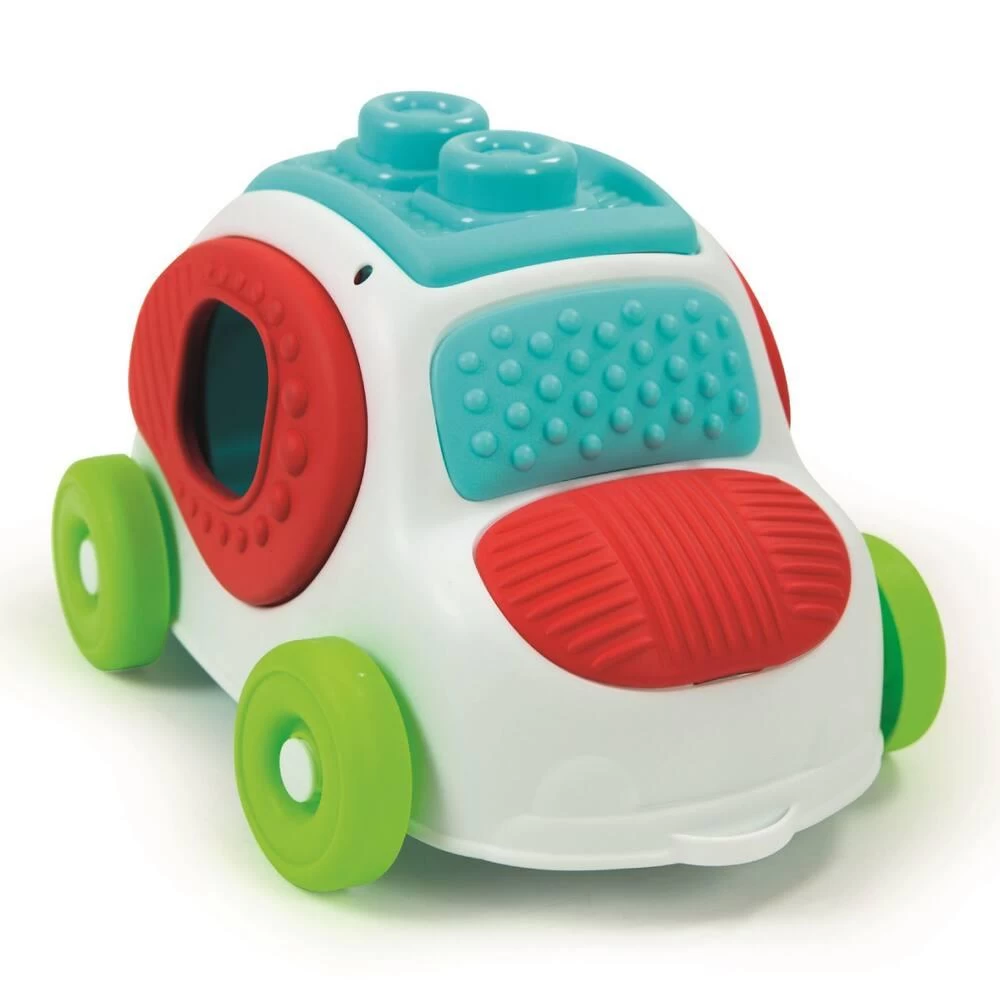 Une voiture innovante avec des parties en matière souple et des cubes Clemmy pour une expérience stimulante qui associe le jeu et la découverte des sens. Les parties souples de la voiture peuvent être manipulées et touchées pour découvrir les différentes textures et formes des reliefs. Cela stimule le sens du toucher et des capacités de motricité fine. Le toit de la voiture peut être utilisé comme une base pour empiler les cubes Clemmy. Il se lève et permet l’accès à un compartiment de rangement pour les cubes. La fenêtre souple permet de jouer à insérer les cubes Clemmy dans la voiture puis de les retirer. La voiture et les cubes peuvent être lavés, même au lave-vaisselle. 8 blocs inclus. Tous les éléments sont lavables en machine.
