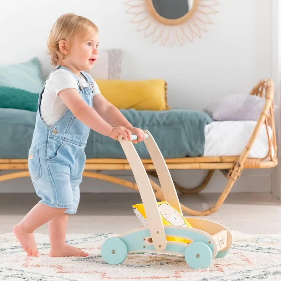 Avec le Chariot de Marche en bois Corolle, votre enfant se lance dans le challenge des « tout premiers pas » ! Il attrape la poignée et peut se déplacer à son rythme grâce à la stabilité du chariot. L’enfant peut placer son petit poupon de 30 cm sur le coussin et se promèner avec, seul, en toute autonomie. À faire monter par un adulte.