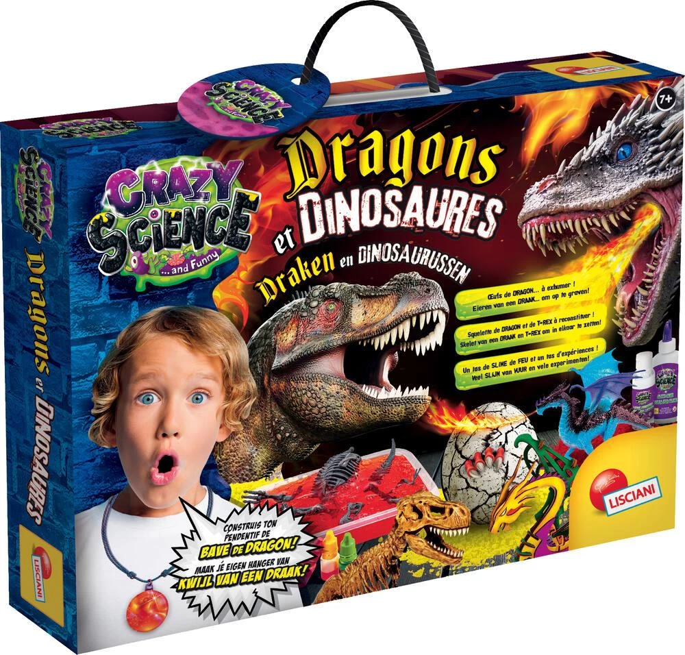 Dragons mythologiques, dinosaures mammouths… ces créatures fantastiques et ces animaux vraiment existants coexistent dans ce kit scientifique rempli de boue de feu, d’œufs à creuser et de dinosaures à construire! Avec le kit Dragons et dinosaures de la gamme Crazy Science, vous avez tout ce dont vous avez besoin pour explorer et comparer ces deux mondes de créatures grandioses. Cet atelier est vraiment fougueux, commencez à créer une amulette pleine de bavures de dragon enflammées, construisez votre propre dragon et dinosaure et découvrez les autres surprises passionnantes! Kit scientifique rempli de slime de feu, d’œufs à creuser et de dinosaures à construire ! Accessoires inclus.!