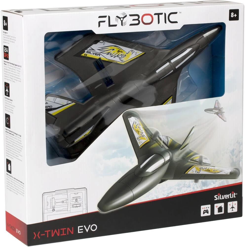 FLYBOTIC-Avion tĂ©lĂ©commandĂ© X-Twin. ComposĂ© d’une matière lĂ©gère et incassable, cet l’avion tĂ©lĂ©commandĂ© idĂ©al pour les dĂ©butants et jeunes enfants. Très facile Ă prendre en mais grâce Ă sa forme aĂ©rodynamique et son assistance de vol, il possède 3 niveaux de difficultĂ©. Votre enfant pourra donc progresser dans son apprentissage du pilotage en douceur ! Il se pilote aussi bien en intĂ©rieur qu’en extĂ©rieur grâce Ă sa technologie 2,4Ghz. 1 batterie rechargeable incluse pour l’avion.