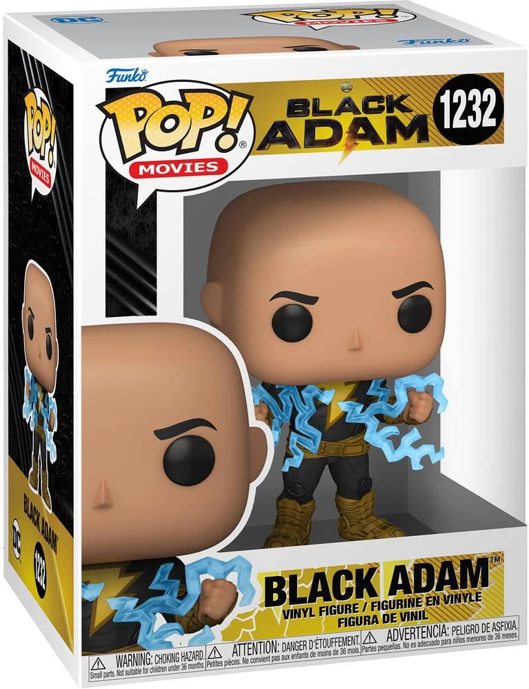 Série Pop! Movies. Black Adam. Figurine en vinyle. Il s’agit du personnage de Black Adam dans le film. Il est représenté avec la foudre bleue dans les mains utilisant son pouvoir. 2 modèles assortis : dont un modèle en édition limitée brillant dans l’obscurité (glow chase).