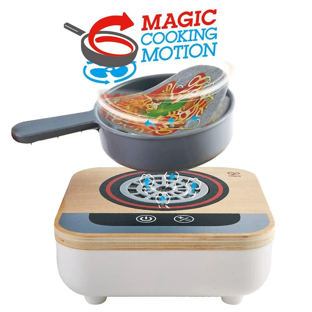 Apprenez à cuisiner avec cette poêle à frire. Possède un ventilateur qui fait tourner les aliments dans la poêle comme s’ils bouillonnaient, grésillaient ou étaient en train de frire. Sans chaleur ! Regarde tes plats frémir dans la poêle grâce à ????. Contient 1 station de cuisson (avec effets sonores), 1 poêle, 3 ronds en feutrine, 1 spatule, 1 salière et 1 poivrier.