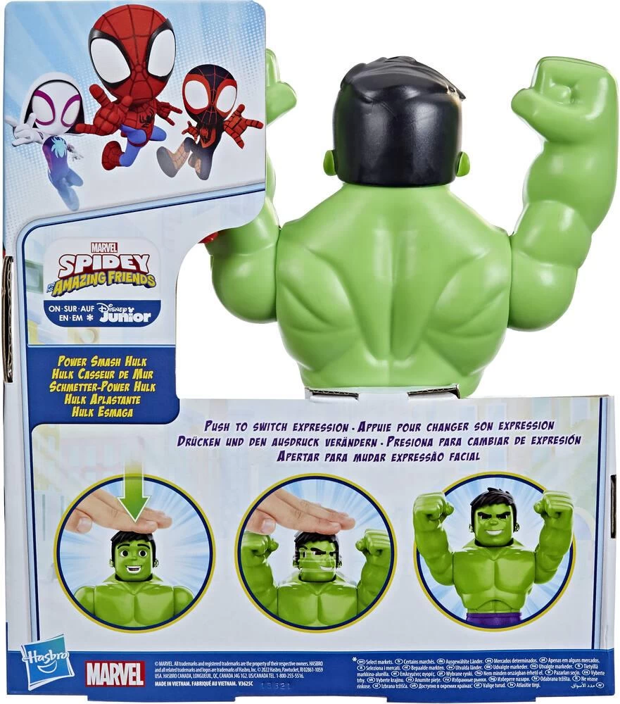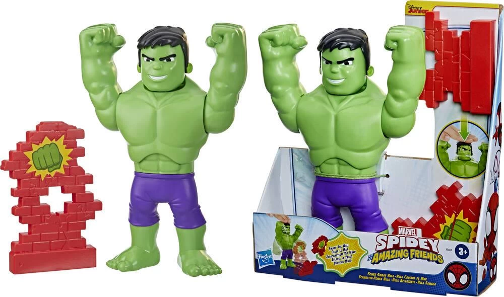 On peut sentir la puissance de cette figurine de 25 cm Hulk Casseur de Mur de Spidey et ses Amis Extraordinaires ! L’expression faciale de cette figurine articulée change de contente à déchaînée quand on appuie sur sa tête pour que les enfants puissent imaginer qu’il se prépare à l’action. Appuyer sur la tête de la figurine fait également bouger ses bras de haut en bas pour lui faire fracasser le mur inclus. Inspirée du dessin animé préscolaire Marvel, cette figurine est un cadeau amusant pour un enfant à partir de 3 ans qui aime les aventures de Spidey, Miles Morales: Spider-Man, Ghost-Spider et tous leurs amis extraordinaires. Copyright MARVEL. Toutes les marques de commerce et les marques de commerce déposées appartiennent à leurs propriétaires respectifs. Hasbro and all related terms are trademarks of Hasbro.
