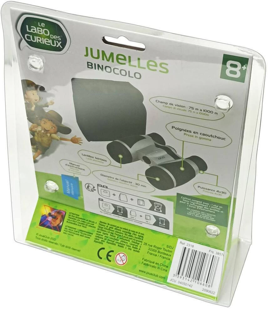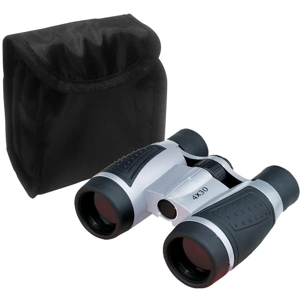Compactes et légères, jumelles avec lentilles en plastique, teintées et poignées en caoutchouc. Puissance : 4 x 30. Champ de vision : 75 m à 1000 m. Diamètre de l’objectif : 30 mm. Elles sont livrées avec un étui en tissu synthétique, un chiffon pour le nettoyage des lentilles et un livret d’instructions. Modèle et coloris selon disponibilité.