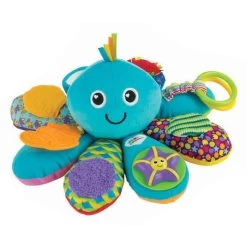 Chaque tentacule a une activité différente (8). Anneaux qui éveillent la curiosité de bébé et encouragent à la manipulation. Des bruits de papier froissé. Un miroir. Un anneau de dentition. Des bruits rigolos lorsque l’on tourne l’étoile de mer. Un « pouët-pouët » à découvrir ! Les différents types de tissus et matières incitent à la manipulation et développent la micro-motricité.