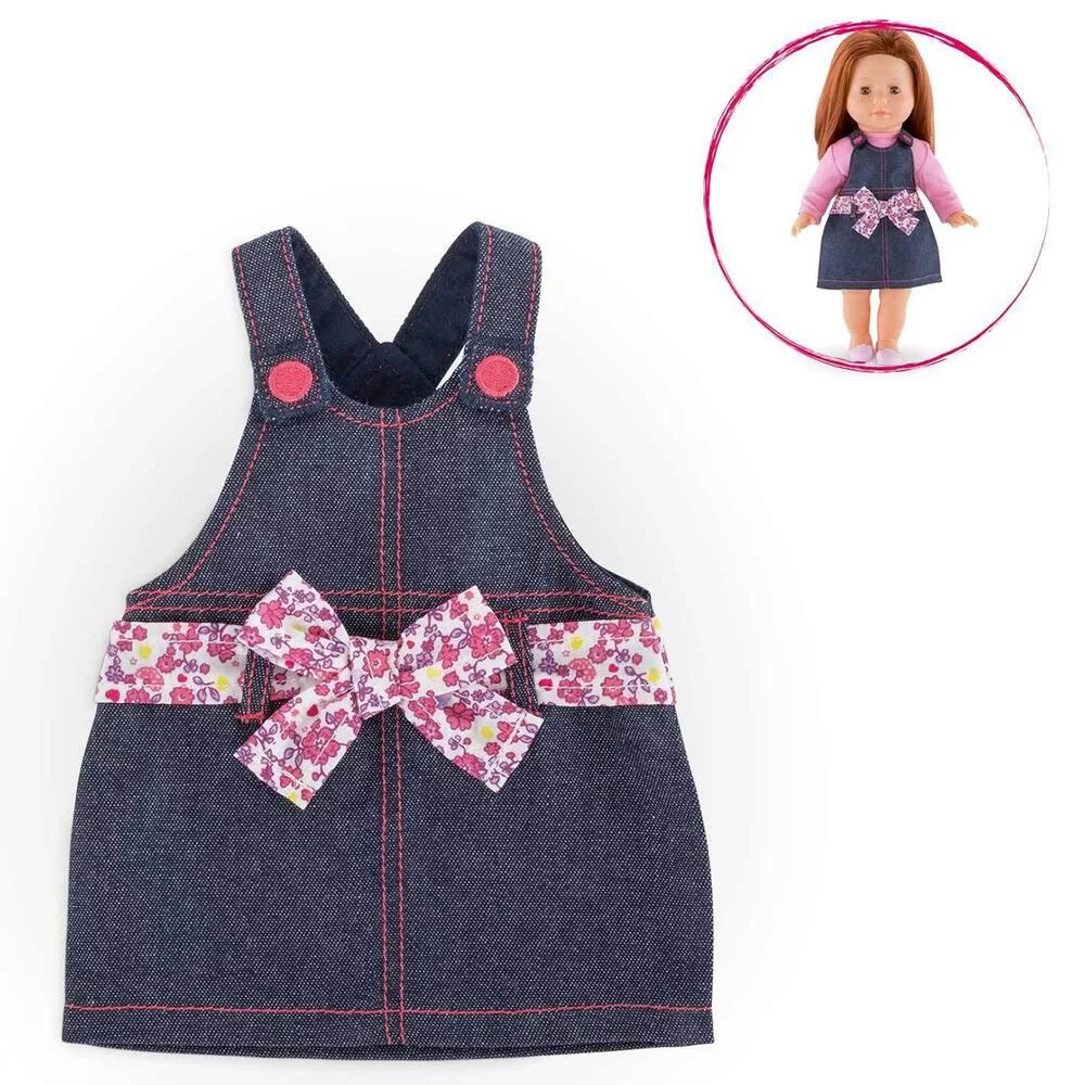 Robe en jean forme « salopette » pour poupée Ma Corolle 36 cm. Lavable à la main.