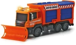 Camion chasse-neige Scania 19cm avec pelle mobile et amovible et effets sonores et lumineux. La cabine est en Die Cast. Le réservoir à sel peut véritablement être rempli et il est possible d’épandre le sel au cours du trajet. Idéal pour développer les compétences motrices.A partir de 3 ans.