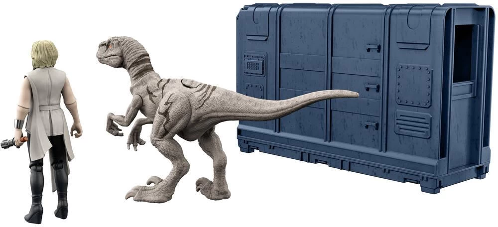 Ce coffret est inspiré d’une scène mémorable de Jurassic World : Le Monde d’Après. La figurine Soyona est exclusive à ce coffret : elle est livrée avec une figurine Speed Dino et un conteneur de dinosaure pour rejouer la scène iconique du film. Figurines articulées : 7 points d’articulation pour la figurine dinosaure et 10 points d’articulation pour la figurine humaine. Hauteur : dinosaure 15.3 cm, figurine humaine 9.5 cm. Dimensions du conteneur : 18 x 11.5 x 6.4 cm. Instructions imprimées sur la boîte. Matières : plastique et PVC.