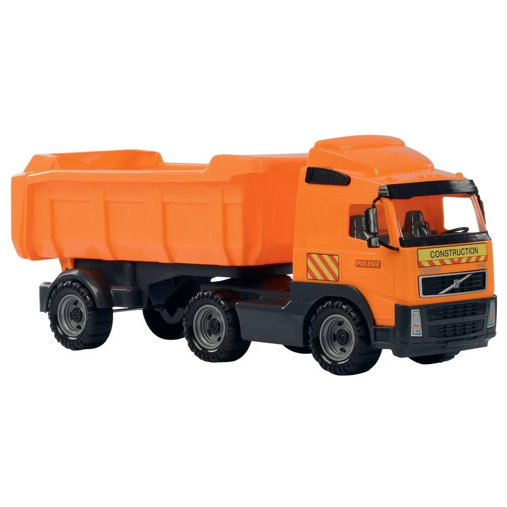 Echelle 1:16. Camion Volvo FH12 avec remorque et benne basculante. Camion de construction de couleur orange : véhicule roues libres. La benne est amovible. Pour jouer à l’intérieur et à l’extérieur. Sous licence officielle Volvo camions.