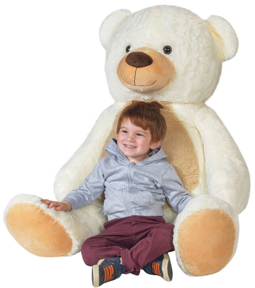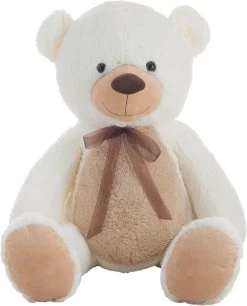 Peluche ours bicolore crème de 140 cm. Peluche très douce. En polyester. Nettoyage à sec. Cette peluche peut aussi être une jolie décoration dans une chambre d’enfant.
