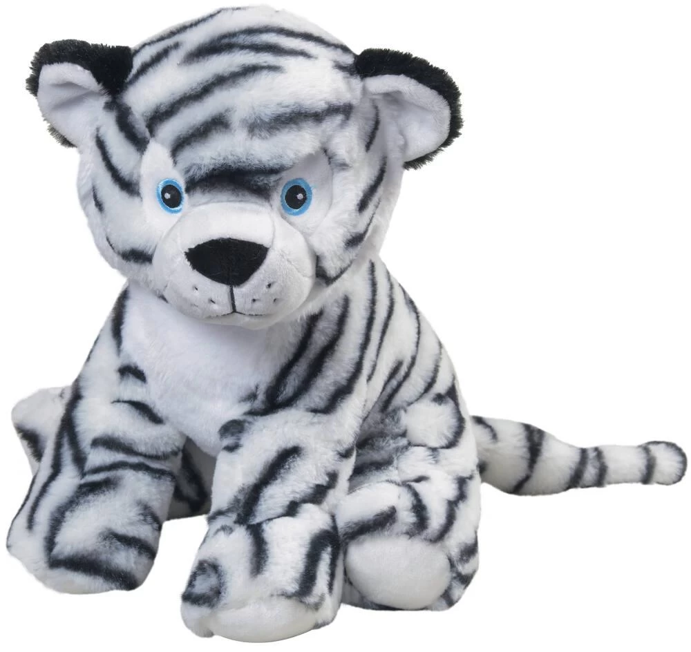 Peluche tigre assis de 28 cm en matériaux recyclés. Modèle selon disponibilité.
