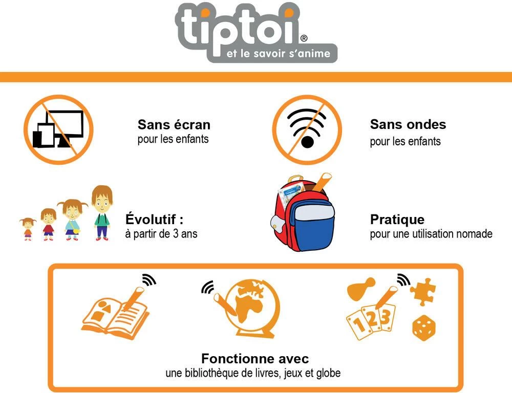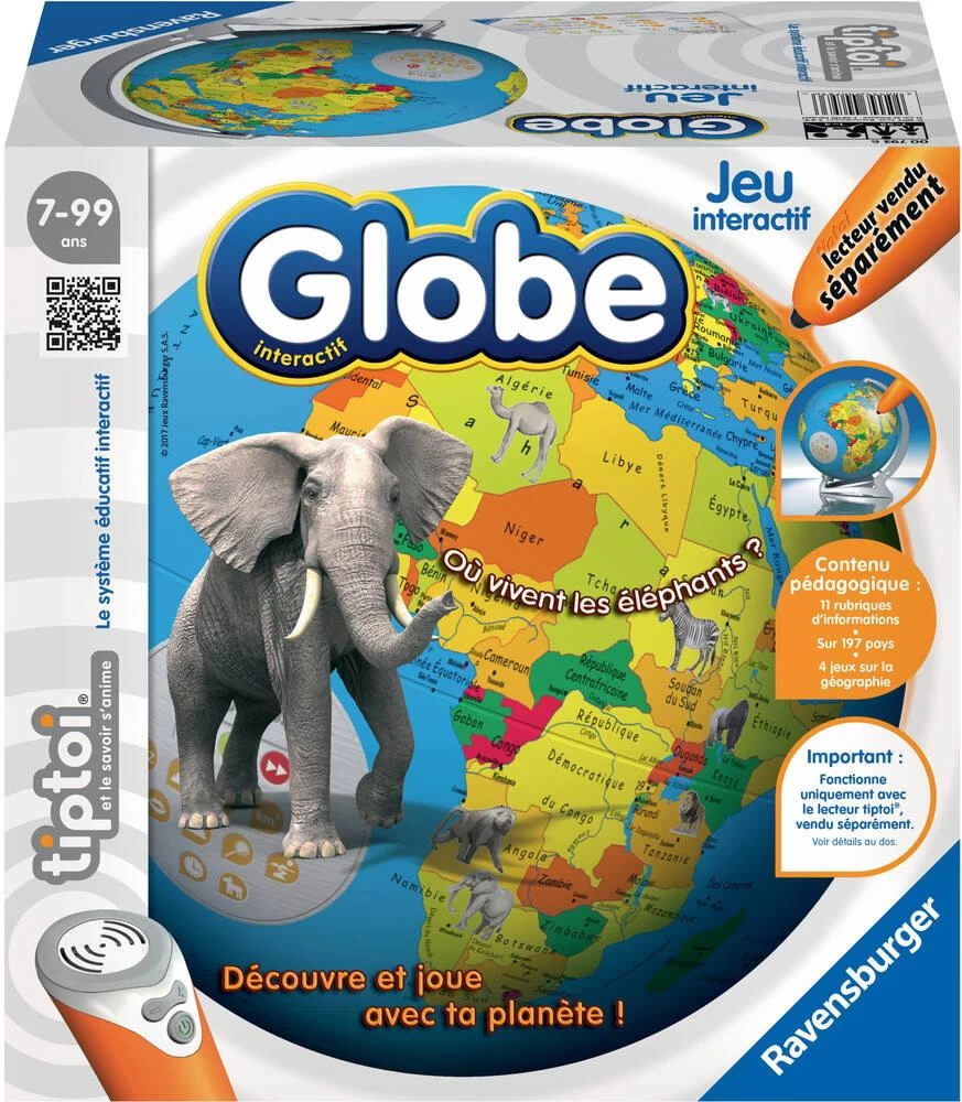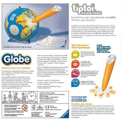 Avec le globe interactif tiptoi®, découvrez les 197 pays de la planète, au travers de milliers d’informations : les populations, les capitales, « Bonjour » dans toutes les langues, et jouez à 4 jeux captivants !