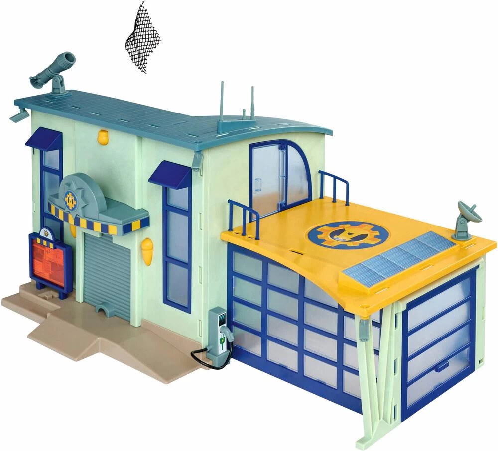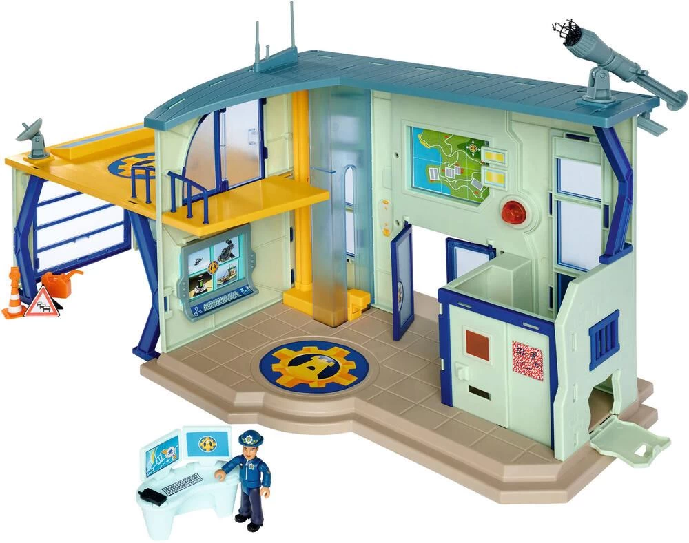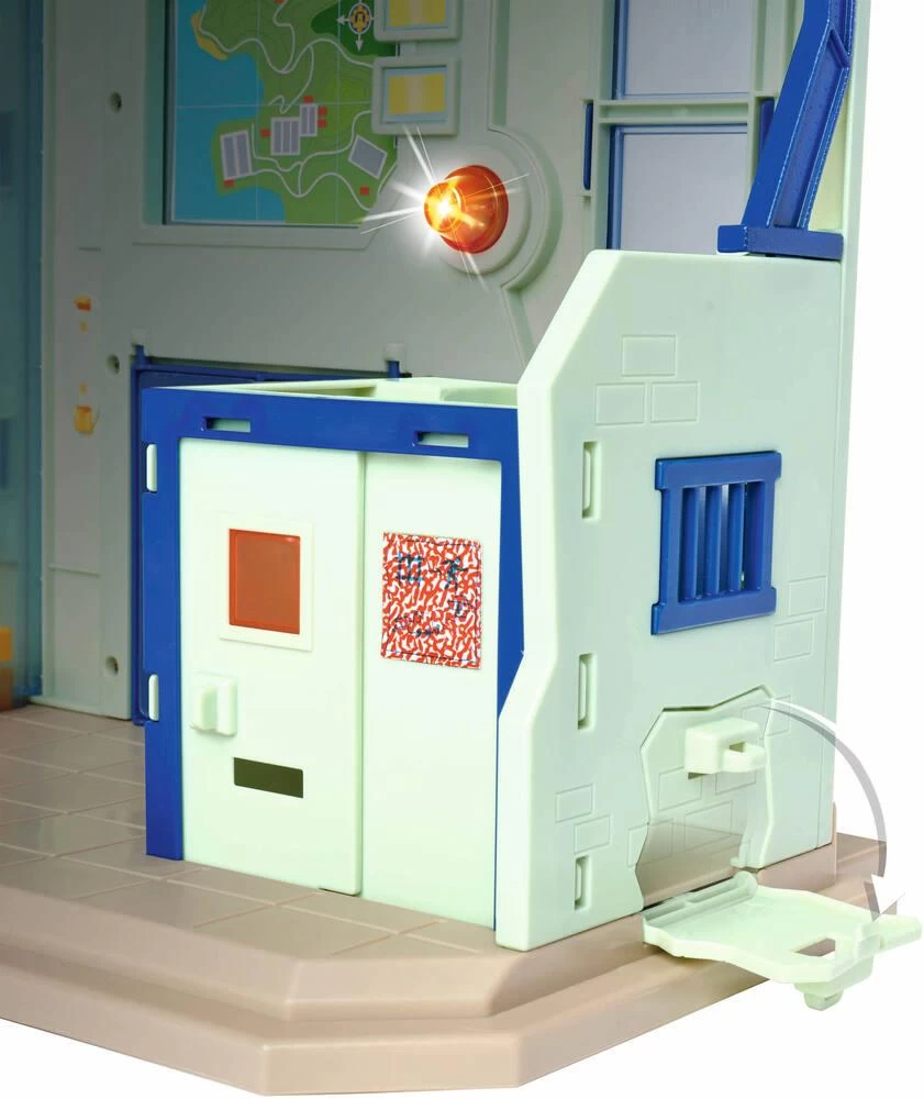 Playset représentant la station de police de la série « Sam le Pompier ». La station contient plusieurs fonctions de jeu et des fonctions sonores et lumineuses : une place de parking pour un 4×4, une cellule de prison avec trappe d’évasion, un ascenseur, une fonction alarme, un héliport… De nombreux accessoires ainsi qu’une figurine représentant Rose Ravani sont inclus.