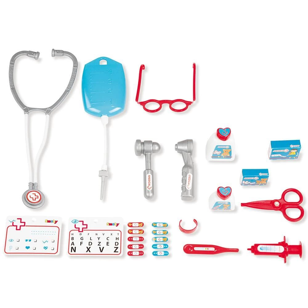 Le chariot idéal pour jouer au médecin, avec des accessoires super réalistes ! Inclus : 2 Flacons, un seringue, un thermomètre, deux boites de pansements avec des pansements, ciseaux, un otoscope, deux cartes, un stéthoscope, un marteau de réflexe, un thermomètre, une paire de lunettes et un vanity. Il est également muni d’un équipement électronique avec sirène et appareil de mesure de l’état de santé et des battements de cœur du patient.