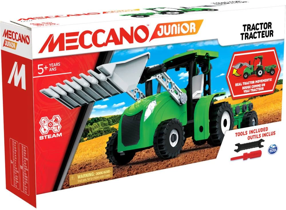 Un superbe tracteur à remorque à construire avec des pièces Meccano Junior : un modèle facile à monter et adapté aux petites mains permettant de s’inventer des kilomètres d’histoires. Ensemble agricole à construire : le tracteur ainsi que sa remorque sont à construire. La pelleteuse et la remorque sont articulées. Développe la logique, la motricité et la créativité des plus jeunes. 110 pièces, 2 outils de montage et une notice de montage inclus.