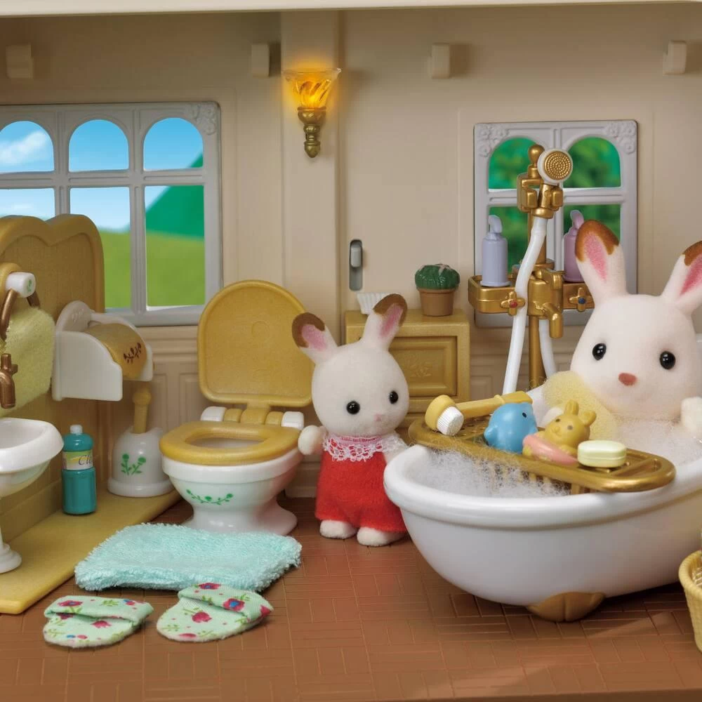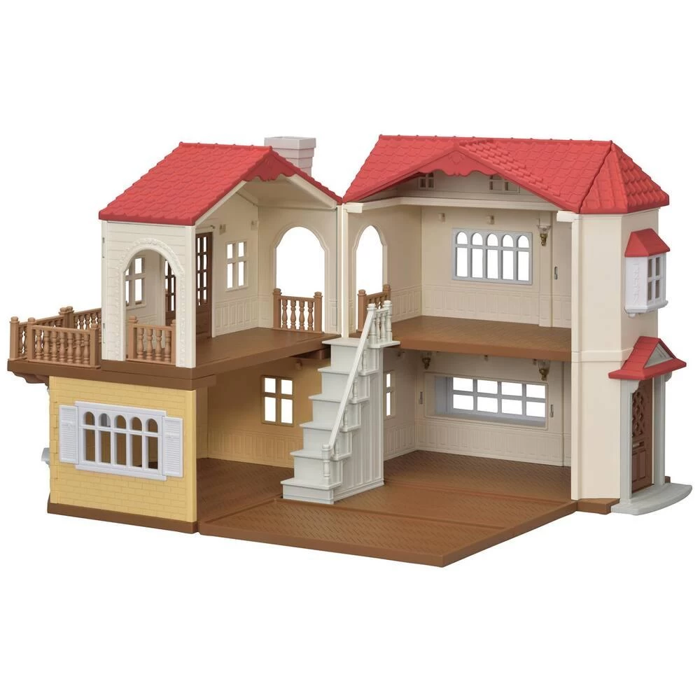 Cette maison s’ouvre et se ferme ! Elle se divise en plusieurs parties et les chambres s’illuminent grâce aux appliques. Figurines et mobilier non fournis.