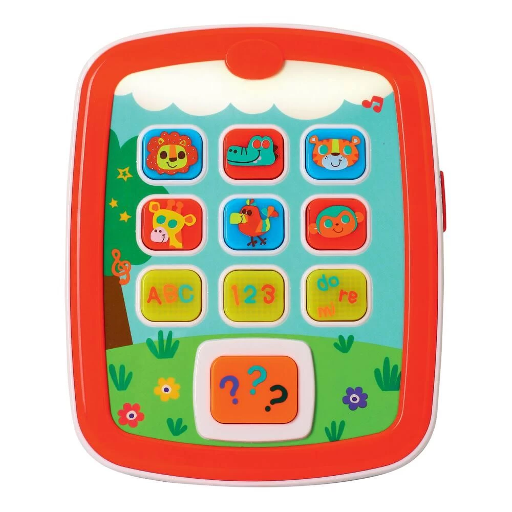 Tablette avec effets sonores et lumineux. Pour dĂ©couvrir et apprendre les lettres, les chiffres et les animaux. Amusant. Facile Ă manipuler. Ce jouet comporte des effets sonores et des lumières clignotantes pour stimuler la curiositĂ©, les sens de votre bĂ©bĂ© et pour dĂ©velopper ses habiletĂ©s cognitives. Touche des lettres : appuie sur une touche pour entendre la lettre correspondante accompagnĂ©e d’une lumière clignotante ; cela encourage votre bĂ©bĂ© Ă rĂ©pĂ©ter les lettres et Ă apprendre l’alphabet. Touche des chiffres. Boutons des animaux : appuie sur le bouton d’un animal pour activer des sons d’animaux, de la musique et des effets sonores. Touches Do, RĂ©, Mi : appuie sur une touche pour jouer la note correspondante avec un accompagnement musical. Avec arrĂŞt automatique et rĂ©glage du volume sonore. En plastique.