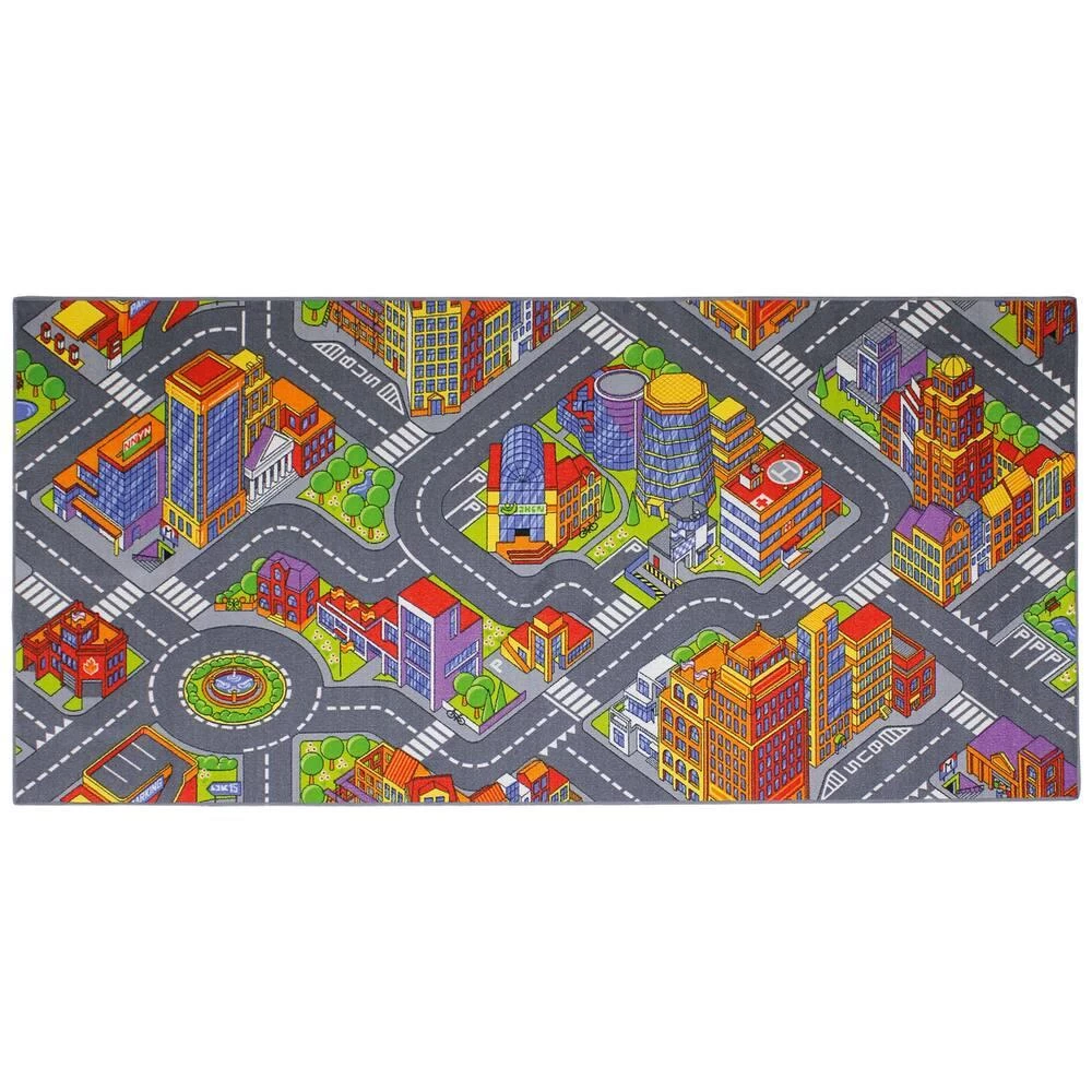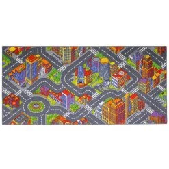 Tapis tufté à velours bouclé synthétique 100% polyamide (nylon), avec un dossier mousse (gelfoam) antidérapant. Qualité standard, poids brut 1,32 kg/m2. Nettoyer toute trace à l’aide d’une éponge humide et de détergent doux. Ce produit n’est pas un jouet.