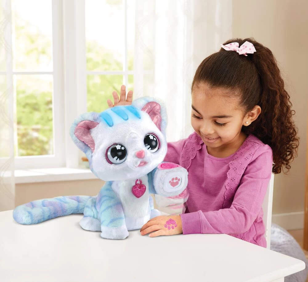 Ruby applique tout seul un joli tatouage pailleté sur ta main ! En peluche, il réagit quand tu le caresses et quand tu le nourris. 1 biberon et 1 tampon pailleté inclus.