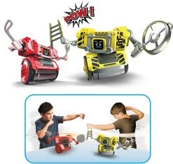 Donne de vrais coups avec tes bras et ton robot les reproduira pour mettre K.O ton adversaire ! 2 robots avec détection de mouvements inclus. Effets sonores et lumineux.
